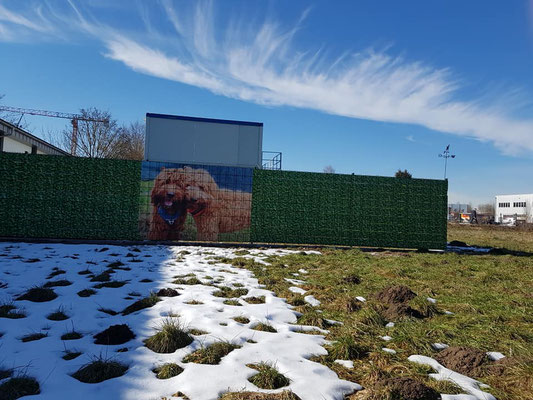 Juli 2018: Das Veterinäramt München Land hat unsere neue Fläche im Gewerbegebiet von Ismaning begutachtet, nun fehlt nur noch der endgültige Zaun rund um unseren Garten.