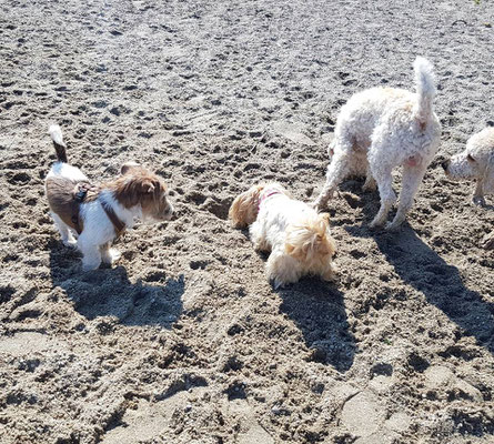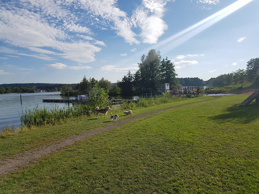 Offiziell herrscht hier zwar Leinenpflicht, aber das scheint niemand so genau zu nehmen. Die Hunde finden es super. Wir fahren hier immer wieder gerne hin - ein wirklich empfehlenswertes Ziel für einen Ausflug mit Hunden.