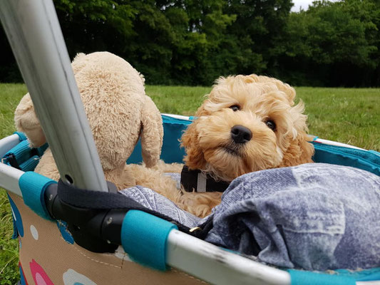 Mit den Hunden sind wir täglich unterwegs, - entweder zu Fuß in der näheren Umgebung oder mit dem Auto zum Englischem Garten. Unser Fahrzeug bietet uns viel Platz, eine sehr gute Klimatisierung und auch Fahrkomfort. Bei uns fährt jeder Hund einzeln entweder durch einen Gurt am Geschirr gesichert oder aber in einer eigenen Transportbox.
