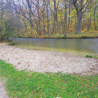 Am Hundestrand im Englischen Garten in München: