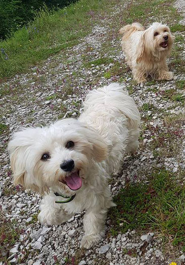 Unsere eigenen Hündinnen, Heidi und Biene, haben einen Altersunterschied von 5 Jahren.